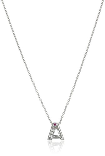 -. Feature : Necklace in 18k white gold with block letter pendent featuring pave-set round diamonds and hidden synthetic ruby in back / Cable chain with lobster-claw clasp / Made in Italy