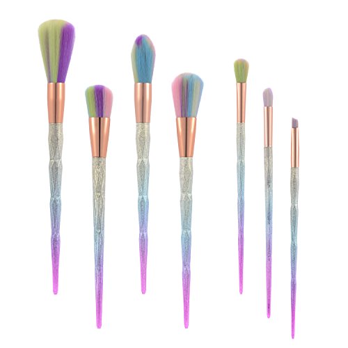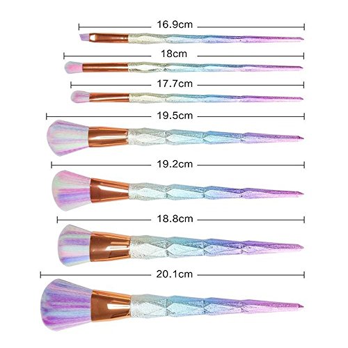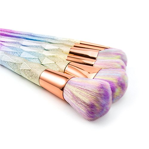 7 Pieces Colorful Make Up Brush Set Rainbow Diamond 3D Handle Glitter Rainbow Hair Foundation Blush Contour Set Powder Cream Professional Unicorn...