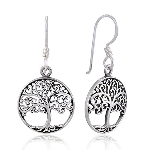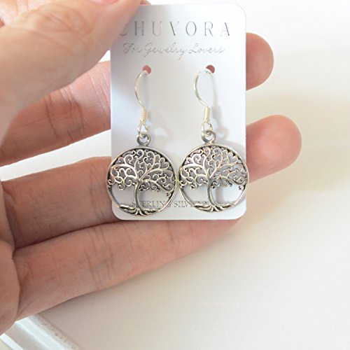 Chuvora 925 Sterling Silver Filigree Tree of Life Round Dangle Earrings - Nickel Free