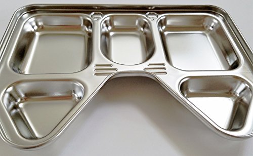 Unique Shape -- The castle (house) shape is fun for ALL, even for those picky eaters! Great modern look- not the typical mirror finish. A non-plastic, dye free, plate that makes mealtime exciting and safe.