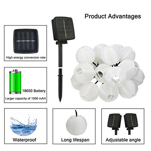 - ❤ SOLAR LANTERNS - These LED lanterns string lights are powered with SOLAR panel. It could charge automatically, set you free from charging with electricity. High power conversion rate make the lights work longer.