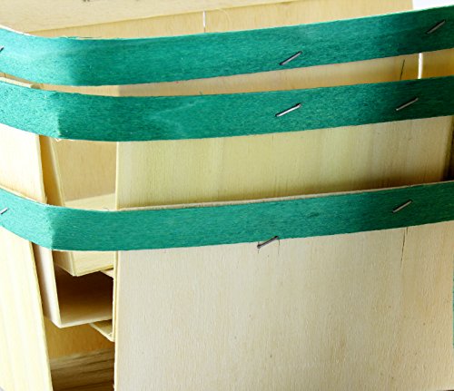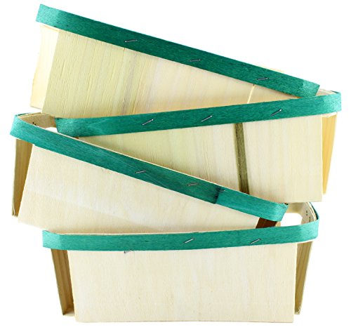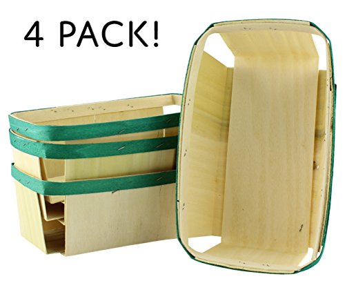 2-Quart Wooden Fruit Baskets w/ Green Band (4-Pack); Long Vegetable Farm Market Baskets for Food Storage & Decorating