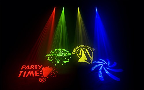 The ADJ Gobo Projector IR is a white 12W LED projector that comes with 4 GOBO patterns and 4 color gels. Custom GOBOs may be inserted for monogramming events or company logos for corporate functions. There is a FX switch on the rear panel to control rotation or static movement. The Gobo Projector IR is compatible with the ADJ UC IR wireless remote (sold separately).