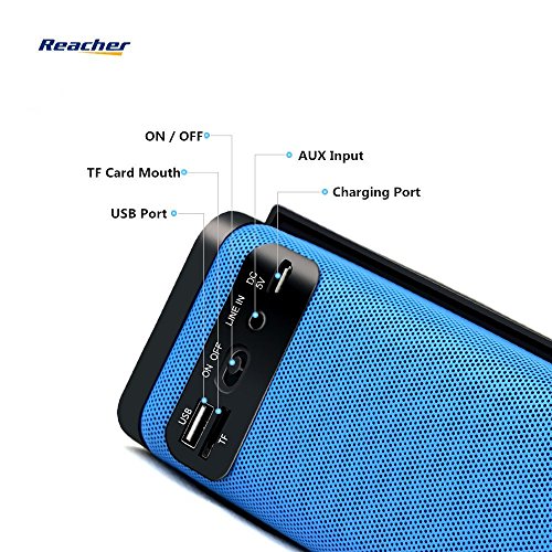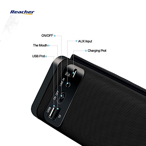 -. Feature : High quality Sound: Built-in double speakers and Bass vibrating membrane, delivers loudly and Hi-Fi music without any impurities. / Multi modes and functions: built-in microphone support handsfree call. With FM radio function, also support AUX input ,TF card, U disk, just press the ¡°M¡± button to transfer from different mode. It can also be used as a power bank to charge your mobiles in emergency. / Widely compatible: workable with both Bluetooth devices and audio devices through 3.5mm Aux in Jack, such as iphone 6 6s 6plus,5 5s 5c, 4 4s; Samsung Galaxy 6s,5s,4s,3s, not 4,note 3,edge; HTC, Motorola, LG ,Nexus, Windows Phone and other Android smartphone. Also compatible with iPad mini, iPad air tablets, Macbook Pro, MP3, MP4, computer, TV,PSPGO etc. / Portable size for both outdoor and indoor activities: the size is only 7.09 *2.56*2.76inch. Your can easily take it to living room, bedroom, kitchen, car, tent, beach ,pool, countryside, field etc. It is very great for hiking, camping, picnic, BBQ, driving, travel and other outdoor activities. Share music with your friends, lover, and family. It is also suitable to be used indoor during Yoga, sports, playing games, watching movie, dancing, cooking, housework etc. / Small gift and friendly after-sale service: there is one piece of Reacher small phone stand in every package as a small gift to every customer buy the S311 bluetooth speaker from Reacher. We will be responsible for any problem caused by seller. You can feel free to contact with us if any problem after sales. We are more than happy to help.