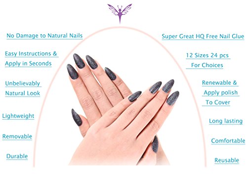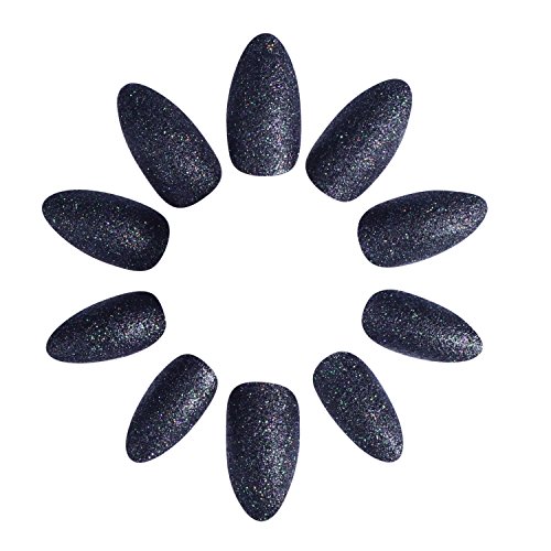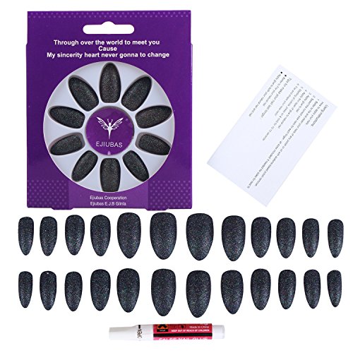 Ejiubas 24 Pcs Witch Black Glitter Talon Full Cover Medium False Nail Tips