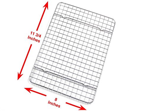 The perfect size! Great for compact kitchens, toaster ovens and RV’s, or just when you’re not baking for a crowd, each rack measures 8” x 11 ¾“ to fit inside a standard 9 ½” x 13” quarter sheet pan, leaving enough space to easily insert and remove without spoiling your meal. Alternatively, use both racks together inside a half sheet baking pan or cookie sheet.