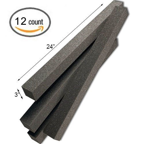 3" x 3" x 24" Acoustic Wedge Studio Soundproofing Foam Corner Block Finish Corner Wall in Studios or Home Theater (12 Pack)