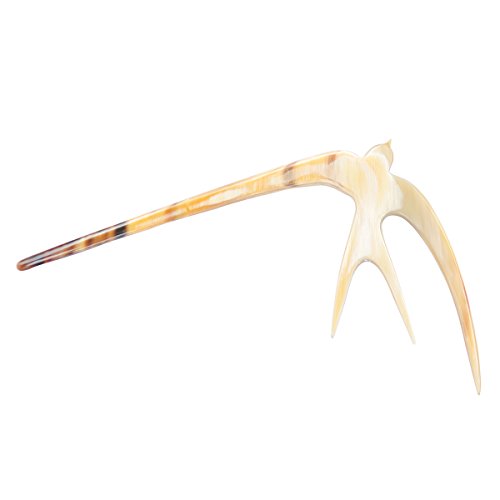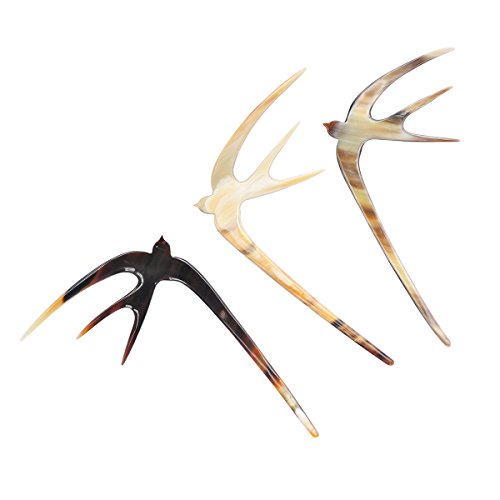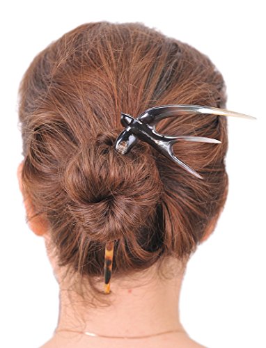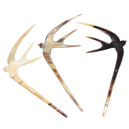 A beautiful hair fork in the shape of flying swallow, 100 % handmade from black buffalo horn, - same molecular nature as hair (keratin), so it GLIDES BETTER THROUGH THE HAIR and cause no static electricity. Finished with Japanese polishing oil- the highest, safest quality polishing oil in the world. All our products are handmade using natural materials. Each piece is unique: variations in the shape, shade and color tones are characteristics of an exclusive item.Feature