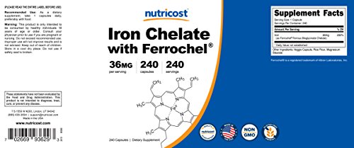 Nutricost's Iron Chelate Ferrochel is a potent iron supplement with 36mg of Iron in every serving. Ferrochel is a form of iron that is extremely well tolerated by the gastrointestinal system.Feature