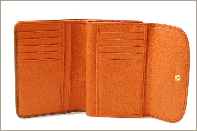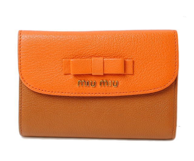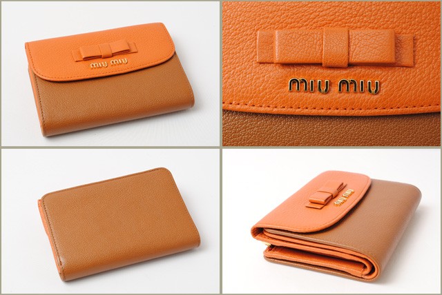 miumiu 3折財布 5ML225 MADRAS BICOLORE/マドラス PAPAYA/CUOIO パパイヤ/ブラウン
