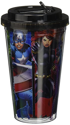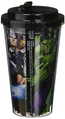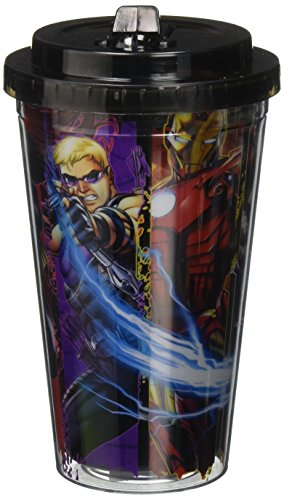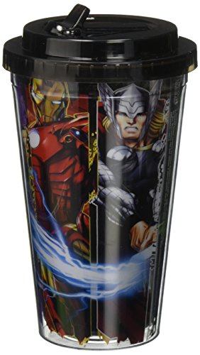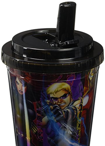 Silver Buffalo AV6884 Marvel Avengers Panel Plastic Cold Cup with Flip Straw, 16-Ounces