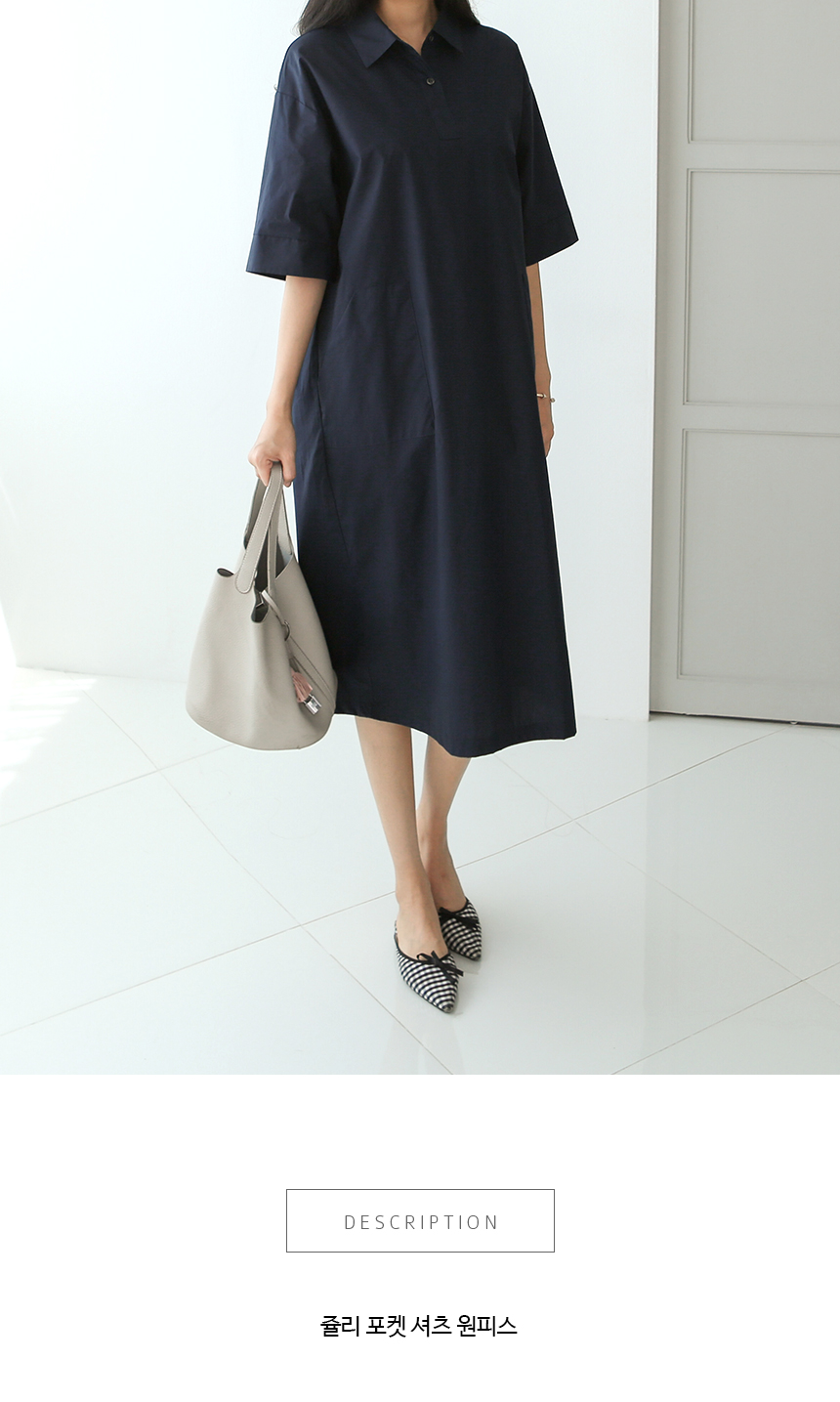 단정한 핏의 카라 포켓 코튼 셔츠원피스