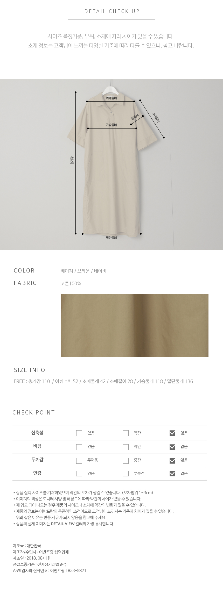 바삭한 코튼 100%에 심플한 디자인이 잘 어우러지며