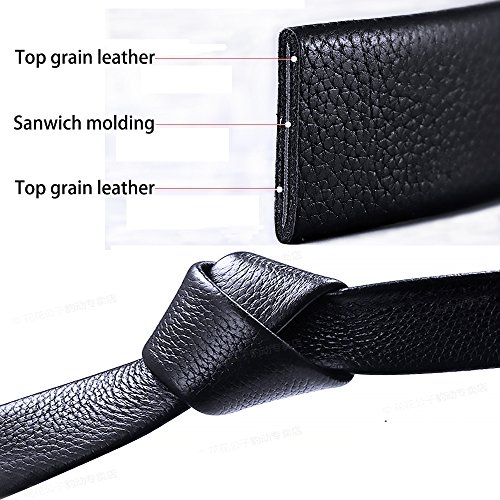 -. Feature : 1.Size:Perfect fits for mostly 30"-47" waist.We provide a 51" Belt for cut-to fit. Easily take apart the buckle and strap, use a scissor to cut extra length to your ideal size and reassemble the buckle and strap together. Kindly note : Please reserve at least 6'' to avoid over-cutting. It's easy to use, functional, durable, casual, reliable, decent, fashion, classic, and high grade. / 2.EXACT-FITTING: Holeless leather belt with 32 unique sliding positions in the ratchet of strap which enable you a micro adjustment to adapt your waist variation. The Idea Size Mark on strap and Easy Ratchet Design in Automatic buckle, which allows you simply to take off the strap from buckle and cut it for your desired waist size / 3.QUALITY & DURABILITY - Solid Belt Buckle is made of premium grade zinc alloy, attractive and functional. Strap is made of high-grade full grain cow leather, very durable and comfortable beyond your imagination.PRICE IS WHAT YOU PAY. VALUE IS WHAT YOU GET. / 4.Suits for Many Occasions like business ,leisure,home and uniform dress,Easy to clean up and lasts a long term durability / 5.Dedicated gift box: This belt is always in style, and definitely a must-have in every man's closet. Great gift idea to surprise your husband, son, father, grandfather, boyfriend, or someone you love.