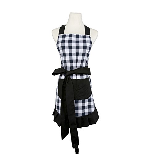 New Black Lattice Pattern Double Layer 100% Cotton Cupcake Apron Women's Cooking kitchen or Backing Apron with One Practical Front Pocket Great Choice for Your Kitchen (Black Lattice & Pockets)