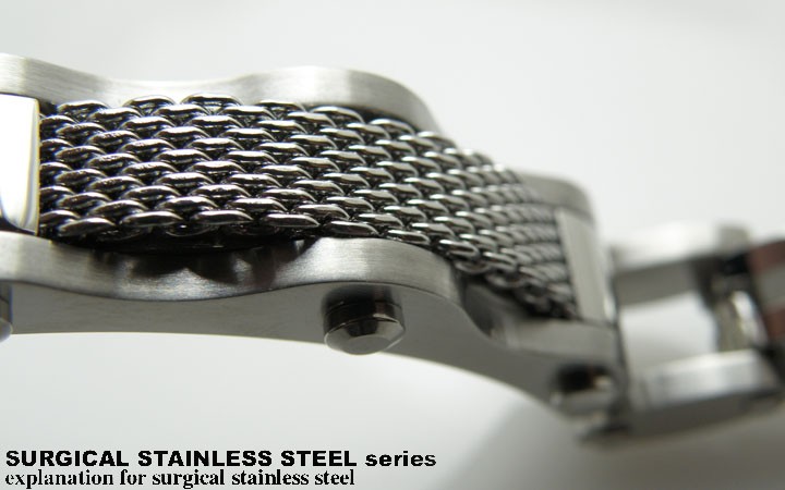 ステンレスには、細かく分類すると200種を超える種類がありますが、その中でもJIS規格で(316L)と呼ばれるサージカルステンレスは医療用工具のメスやハサミなどにも使用されており、 その事からもアレルギー性の極めて低い素材と言うことが分かります。