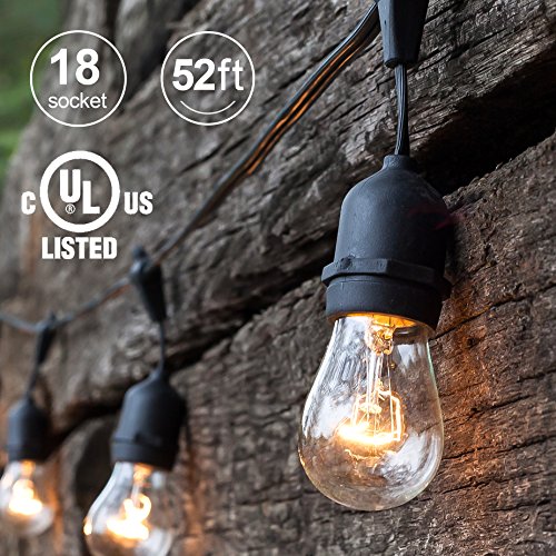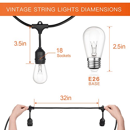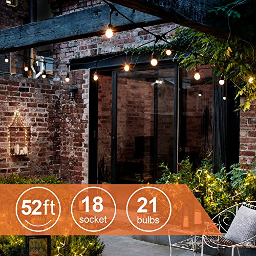[Connectable 18 Hanging Sockets] 21 incandescent warm light bulbs with 52 feet heavy-duty flexible rubber strand.More lamps and longer lines to give you a wider range of lighting.