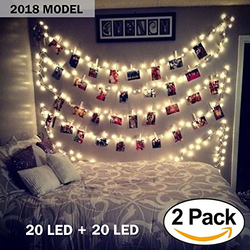 [2 PACK] 20 LED Photo Clips String Lights, Battery Operated - Features Movable Photo Clips - Long Lasting Heavy Duty - Ideal For Hanging Pictures, Cards, Artwork, Decorations - By Horonzo