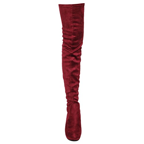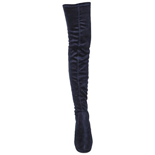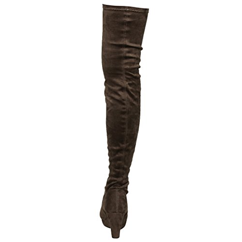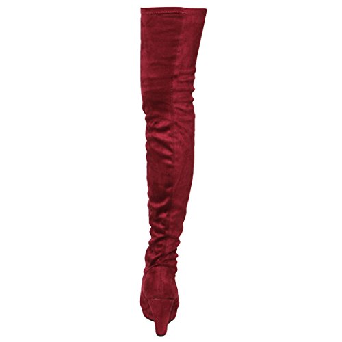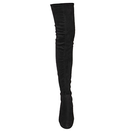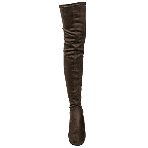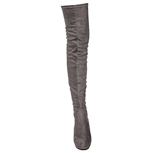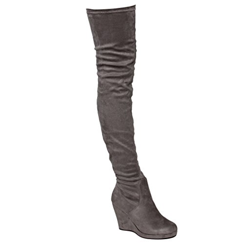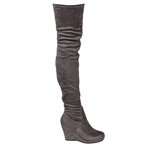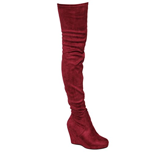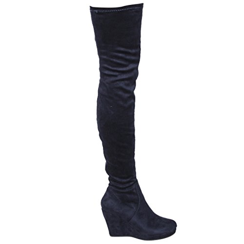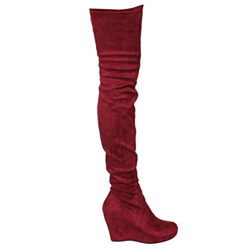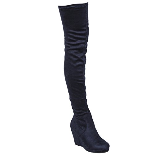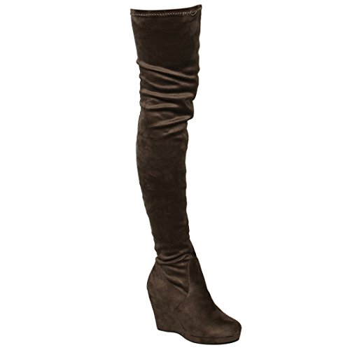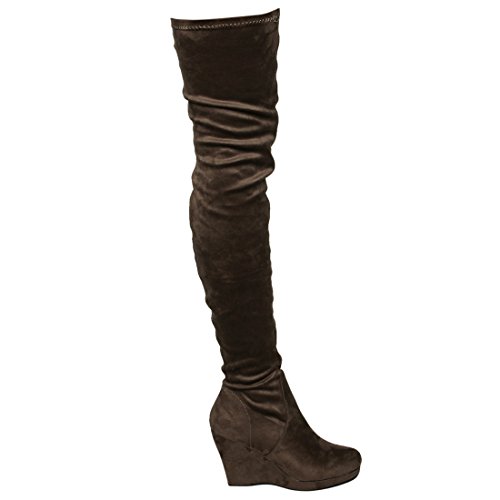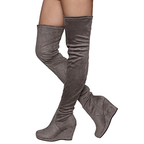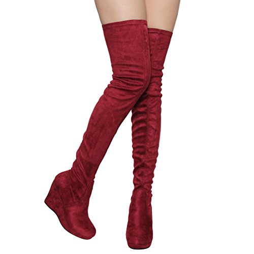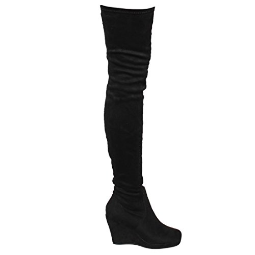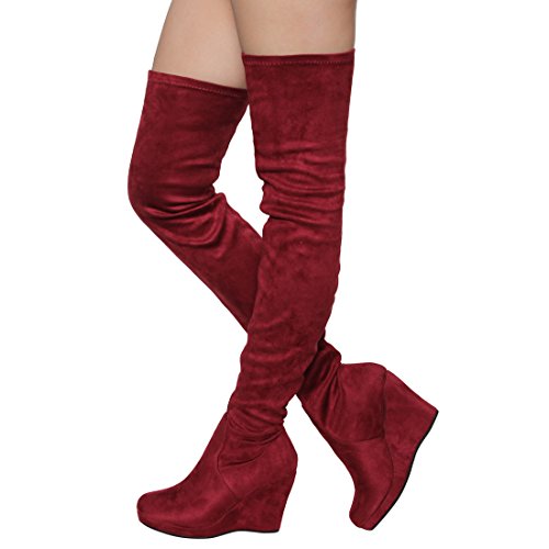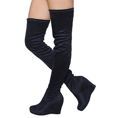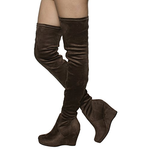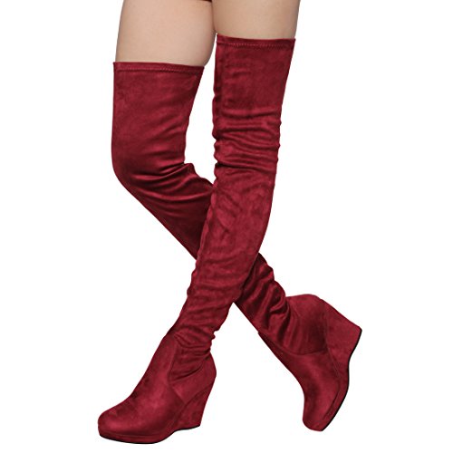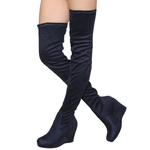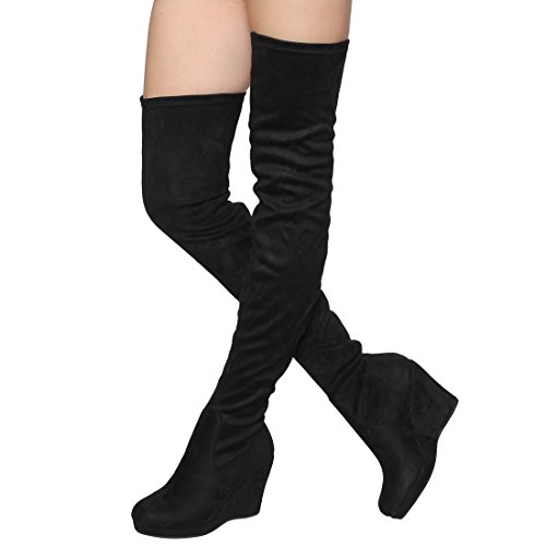 Beston EJ07 Women's Stretchy Snug Fit Thigh High Platform Wedge Heel Boots