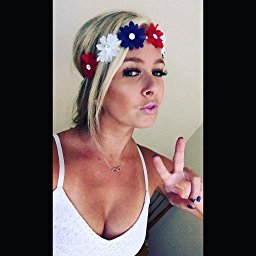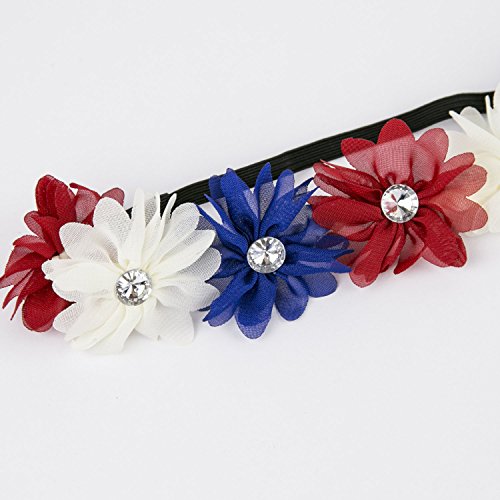 Lux Accessories Women's Red White Blue American Flag Patriotic Floral Flower Crown Stretch Headband