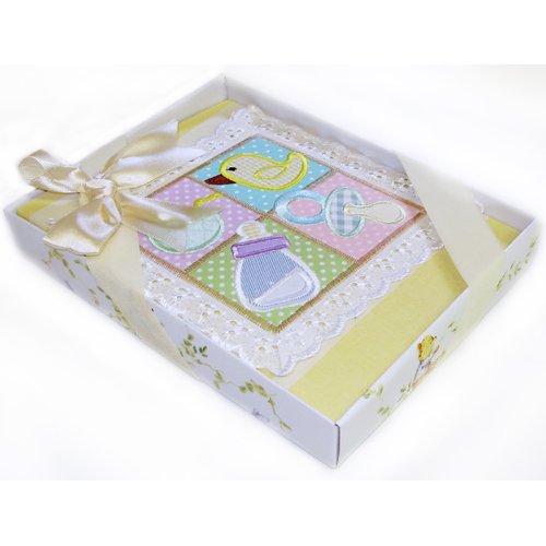This attractive baby album, ''yellow bib, bird, bottle, pacifier'' by Baby Couture, will help you safely store your babies photos while offering hours and hours of fun as you flip through the pages, remembering the cherished moments of your baby's first year. Measures 5.25 x 1 x 7 inches.Exciting and educational, this baby album would make a affordable gift for anyone: your significant other, friend, parent, or a coworker!Feature