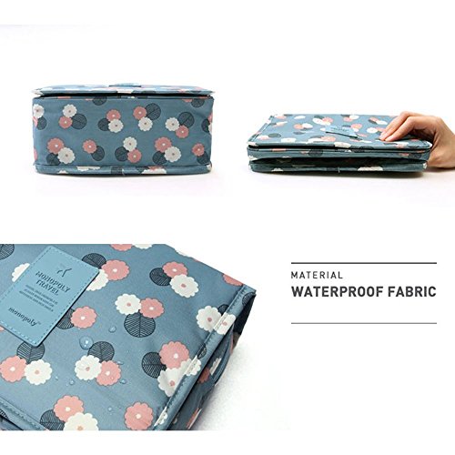 Portable Travel Makeup Cosmetic Bag - Mr.Pro Waterproof Haning Travel Kit Toiletry Bag Bathroom Organizer Carry On Case (Polka Dot Blue)