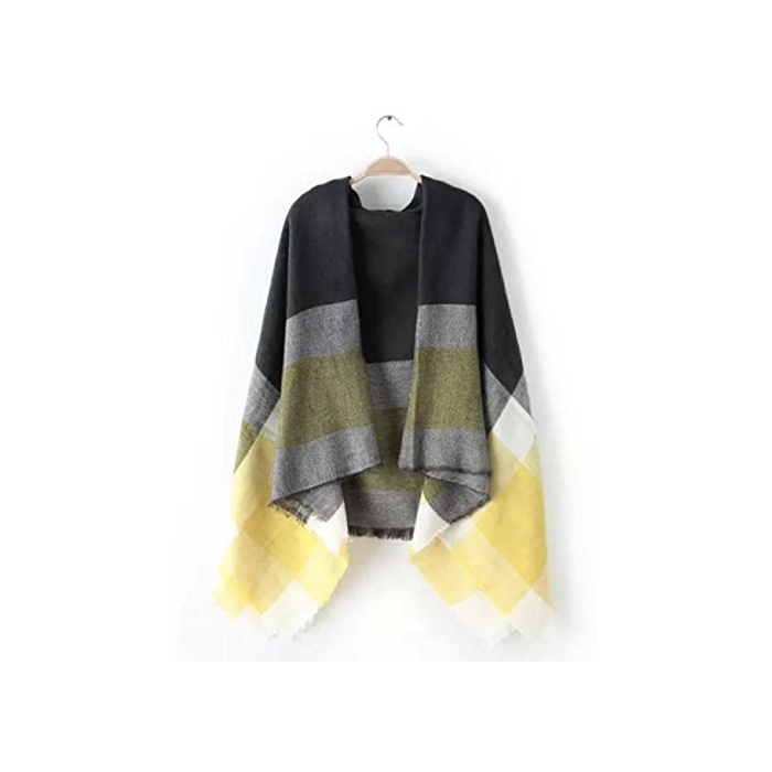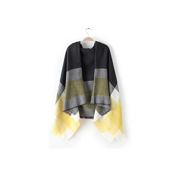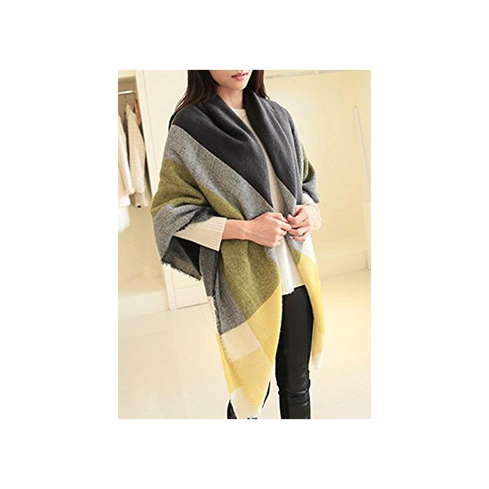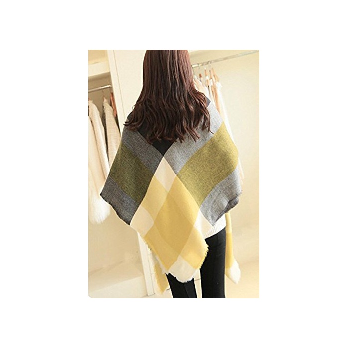 (《슈푸리》) Surpris 따스한 체크 무늬 스톨 머플러 대형 멀티 컬러 핑크 옐로우 (3:옐로우)