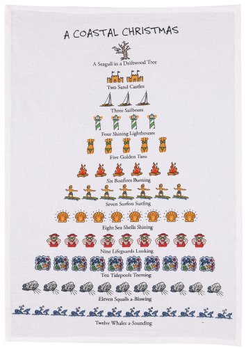 12 Days of a Coastal Christmas Flour Sack Kitchen Dish Towel, 18 Inch X 26 Inch