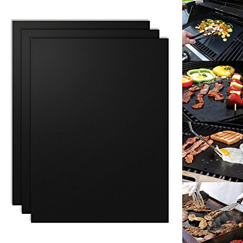 BBQ Grill Mat Set of 3, Reusable Resistant Non-Stick Grill Mat Barbecue Baking Mat, Durable and Easy to Clean, Works on Gas, Charcoal, Electric Grill