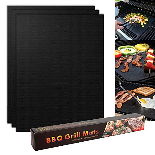 - 100% NON-STICK - The grill mat is made of high-quality composite material. 100% Non-Stick means you can grill without grease and mats are reusable for years!