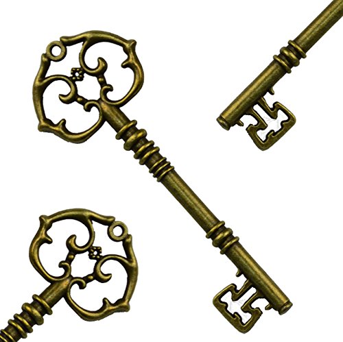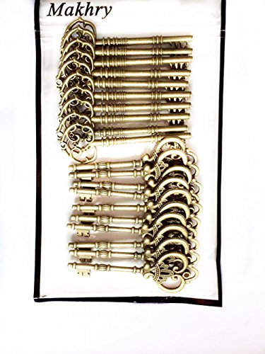 Makhry Mixed 20 Extra Large Antique Bronze Finish Skeleton Keys Rustic Key for Wedding Decoration Favor(Bronze)