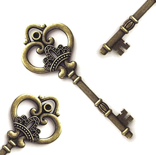 Antique vintage style large skeleton key replicas in antique bronze finish color(two-sided keys)