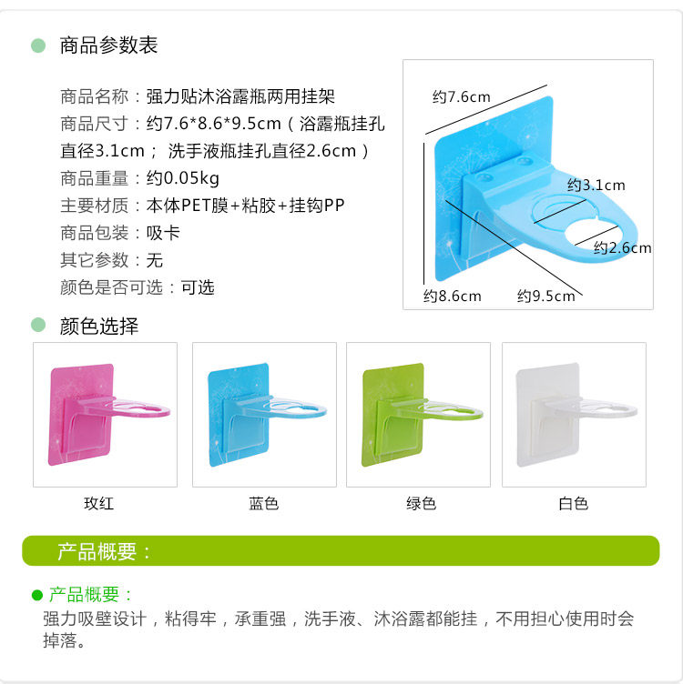 创意无痕强力魔术贴洗发水沐浴露瓶挂架 洗手液架 吸壁浴室置物架