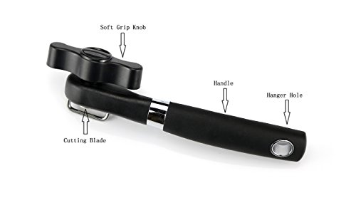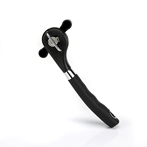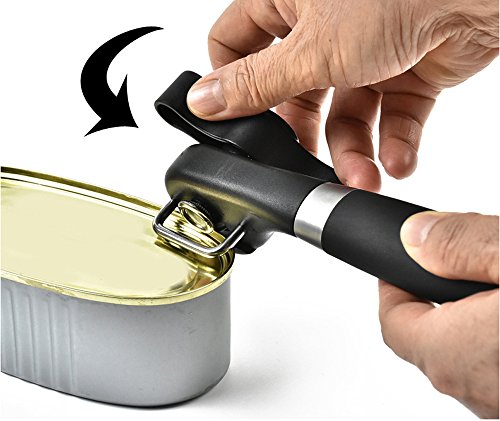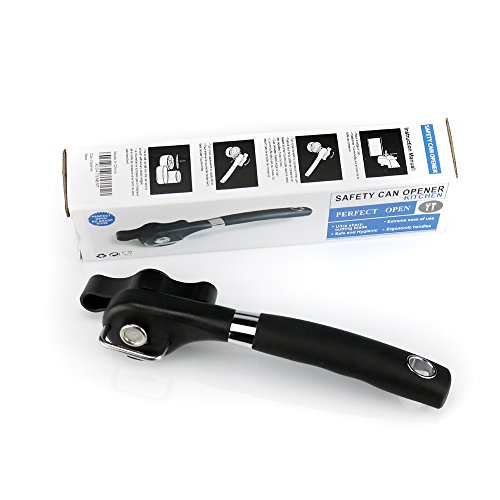 Fair New Style Safe Cut Can Opener, Ergonomic Soft Grips Handle Food Grade Stainless Steel Smooth Edge Can Opener Manual,Black