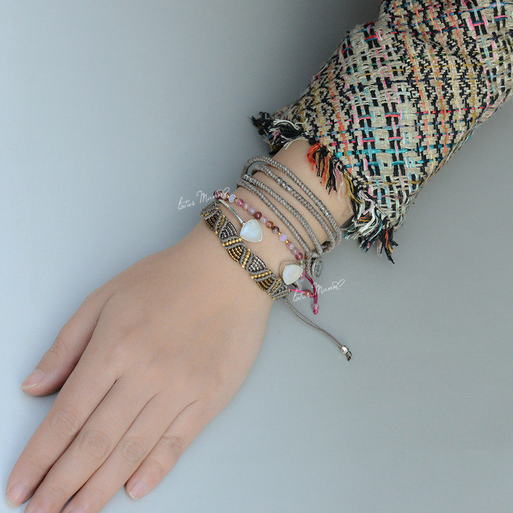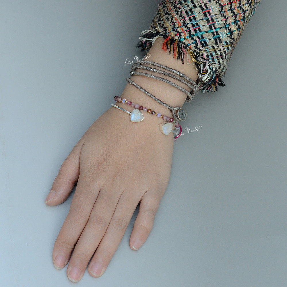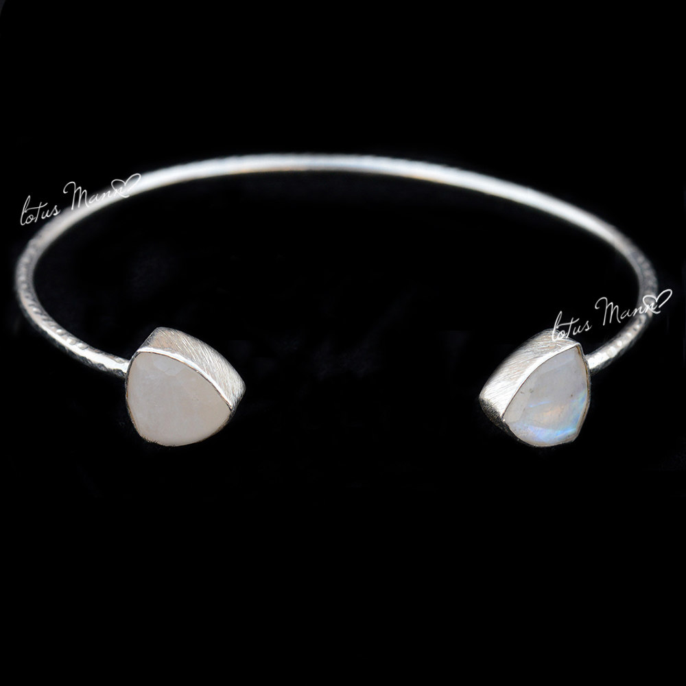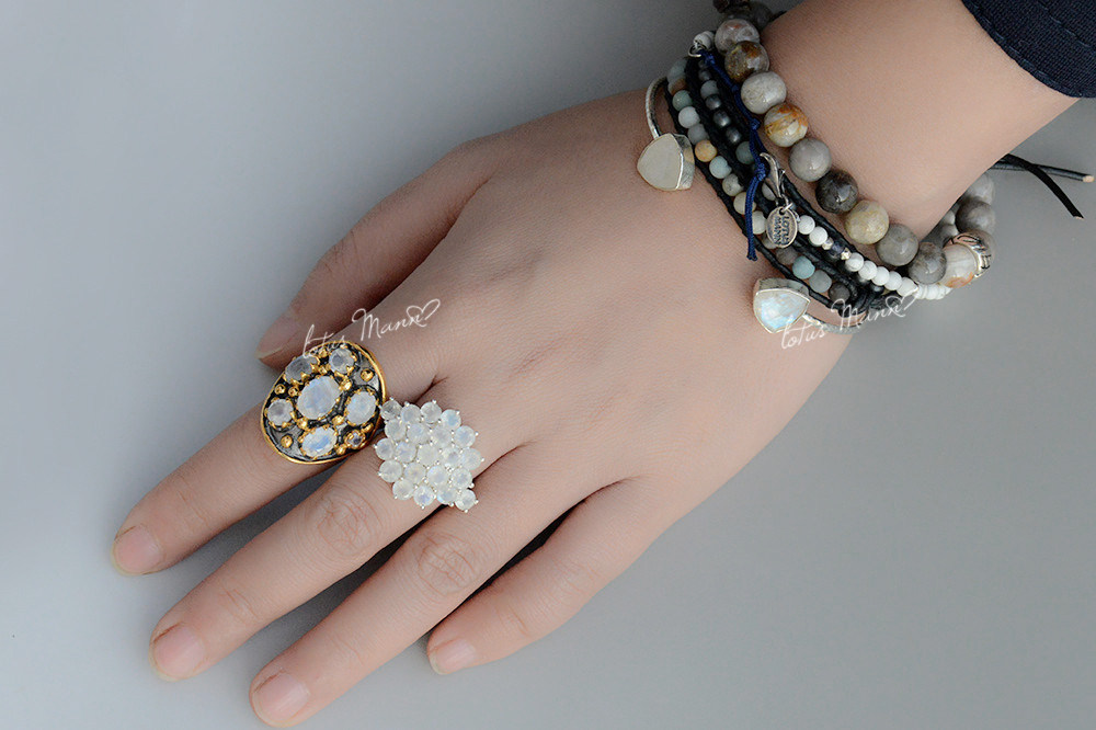 月光石:具有淡蓝色的晕色,如同朦胧的月光,是长石类宝石的珍品。古时候,世界上很多国家的人们就认为佩戴月光石能给人带来好运,并能唤醒心上人的温柔感情,给人以力量,憧憬美好的未来。在现代,许多国家把月光石与珍珠、变石一起定为 “ 六月诞生石 ” ,象征健康、富贵和长寿。月亮石亦称"恋人之石",能改变人的饮食习惯,达到减肥效果。可助人安然入睡,改善皮肤有美容功效。它是爱情石的一种,有助吸引异性,增进情侣双方了解,使感情更加融洽、幸福,快乐。