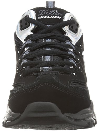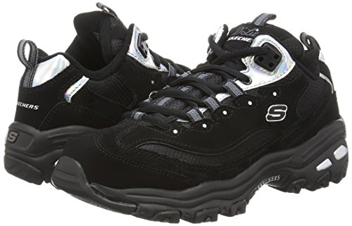 Binding : Apparel Product Description Update your look in comfort and retro-fabulous style with the SKECHERS D'Lites - Wardrobe Change shoe. Soft suede, smooth metallic synthetic and mesh fabric upper in a lace up sporty casual mid high top sneaker with stitching and overlay accents. Air Cooled Memory Foam insole. Soft suede upper; Smooth shiny metallic synthetic overlays; Mesh fabric panels at sides and tongue for cooling effect Suede and synthetic stabilizing overlays; Lace up sporty athletic training and walking mid high top sneaker design; Stitching accents Side overlay panels; Prismatic metallic synthetic detail at heel and sides Metallic stud trim at lace rows; Side S logo Lace up front; Unique 4-way top eyelet for custom lacing Padded collar and tongue; Soft fabric shoe lining Air Cooled Memory Foam cushioned comfort insole; Lightweight shock absorbing supportive midsole; Flexible rubber traction outsole. 0