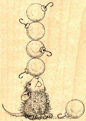 -. Title : {Single Count} Unique & Custom (2.5" by 3" Inches) "Cute Festive Christmas Tree Ornaments Balancing Act" Rectangle Shaped Genuine Wood Mounted Rubber Inking Stamp