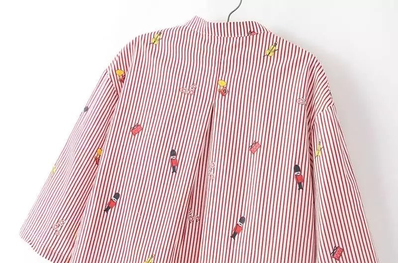100% new Cartoon Printed Red Striped Shirt Women Size : S M Size S Bust 102 length 60 Size M Bust 106 length 61