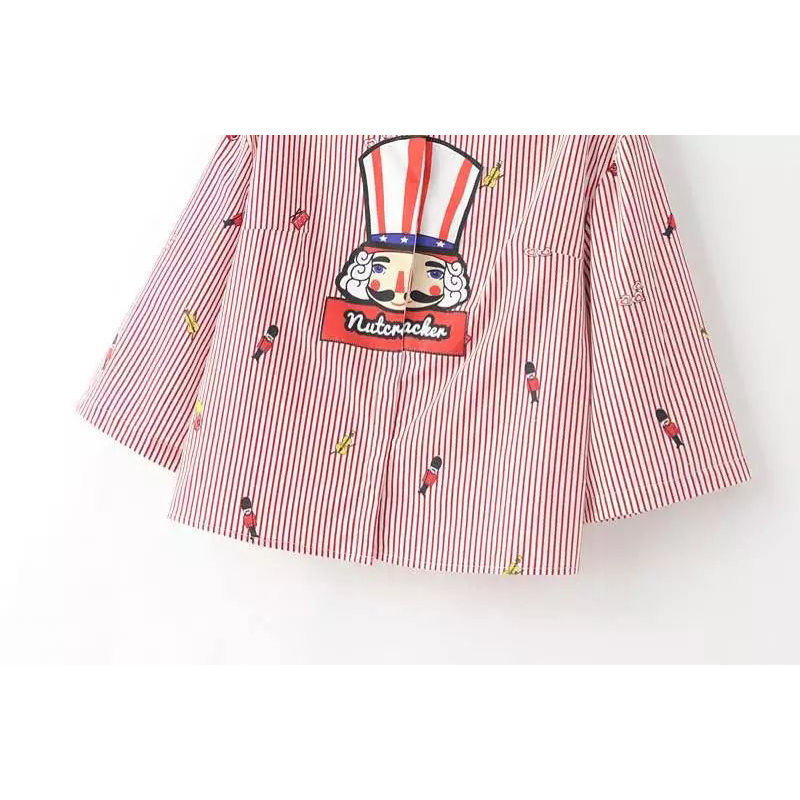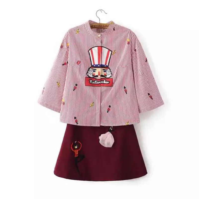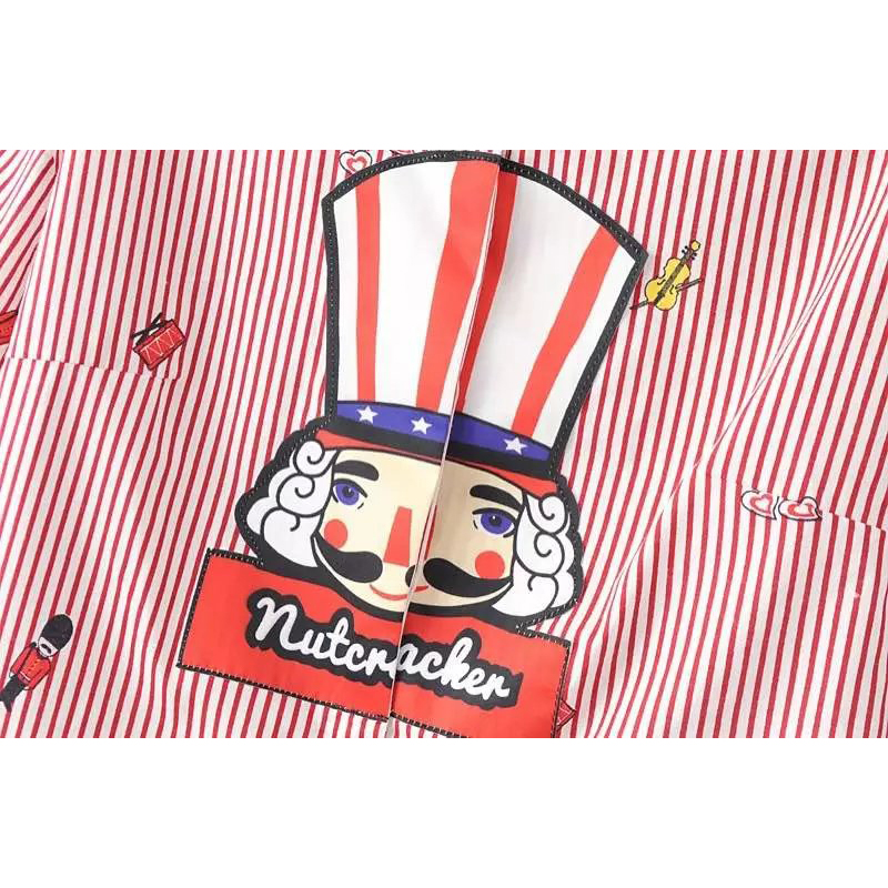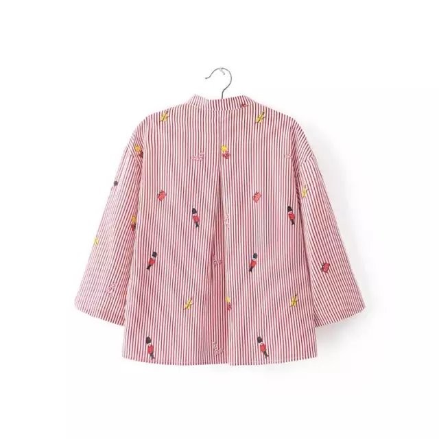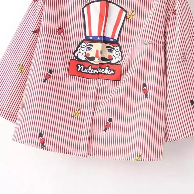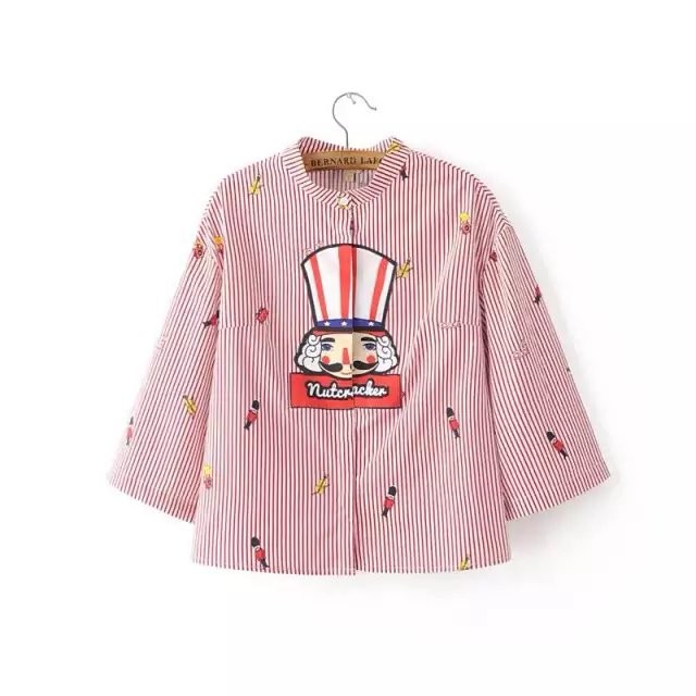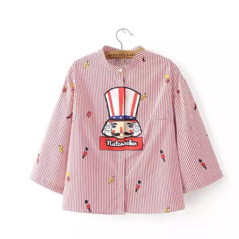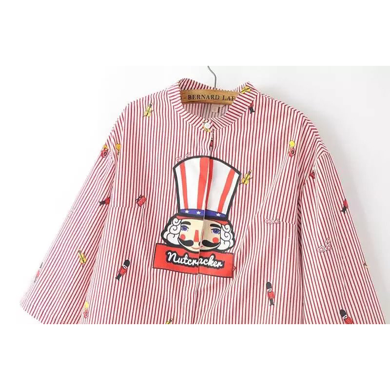 ropa mujer Cartoon Printed Red Striped Shirt Women Stand Collar Long Sleeve Plus SIze Vogue blusa feminino