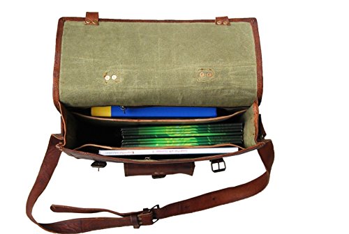 -. Feature : Imported / Leather Messenger Bag Everyday satchel Bag: Use it for school, college, office; carry on bus, bike, or cycle / Dimensions: 15x11x4 Inches. DHK is connected with a number of Organizations within India which work to bring employment to artisans and keep alive traditional skills. / Strong & Durable: Brass Fittings & Buckles, YKK Zippers, Olive Green Heavy Duty Canvas Lining / Perfect and Ideal gift for your loved ones. Stylish and Classy. Will be cherished for a long time. Celebrate Your Every Single Day with Rustic Town!!