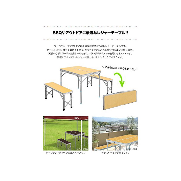 원본상품명: FIELDOOR テ?ブルチェアセット ?納式アルミレジャ?テ?ブル ベンチ分離タイプ