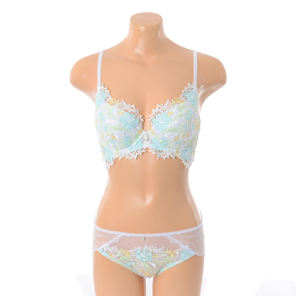 컬러 체인지 캐미컬 자수를 사용하여 화려하면서도 고급스러운 브라 올레이스팬티 세트 아이보리 컬러입니다.