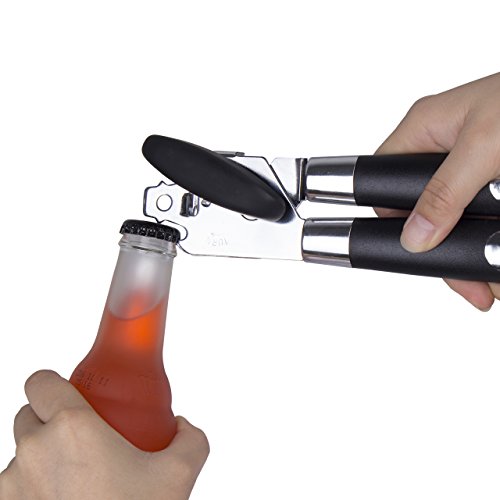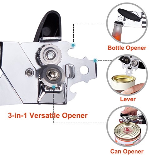 Can Opener – ZWOOS 3-in-1 Manual Bottle Cap Opener and Tin Opener with Lids off Jar Opener, Stainless Steel Cutting Disc with Non-slip Handle and Hanging Holes - Black