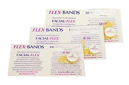 Flex-Bands for maximum results. Our Flex-Bands are made specifically to generate optimal results from facial exercises and the amount of resistance should be increased according to your progress. Flex-Bands must be changed weekly for optimum results.