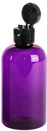 8 Ounce Purple PET BPA-Free Plastic Empty Refillable Boston Round Bottles With Snap Top Caps (Pack of 6)