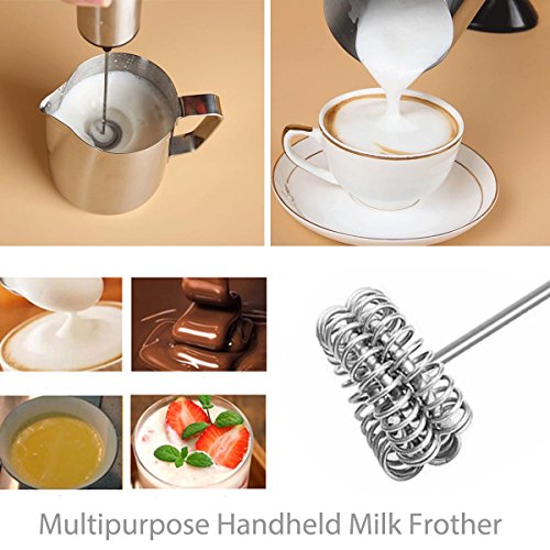 - Handheld battery operated milk frother wand, get creamy froth quickly,works well with chocolate milk, coffee, lemonade, matcha Tea, pre workout energy, certain protein powder etc.