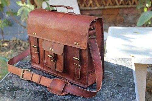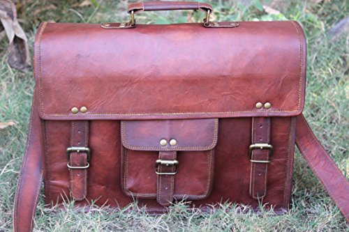 -. Title : HLC Vintage Leather Laptop Bag 15" Messenger Handmade Briefcase Crossbody Shoulder Bag