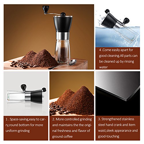 ★ Sturdy Structure -Stainless steel hand crank and ceramic burr,easily detached parts for cleaning.It is carried easily around with,a ideal small gadget for Christmas gift and a good addition to home or a trip