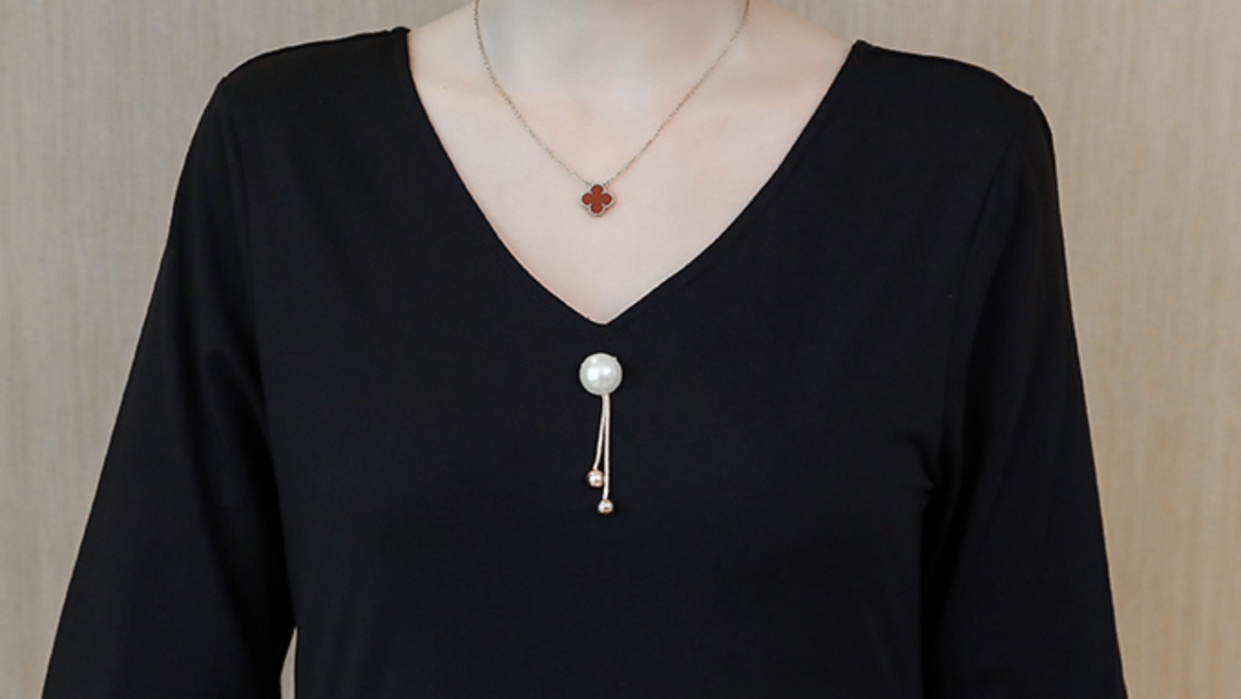 程よいVネックでデコルテラインをチラ見せ
