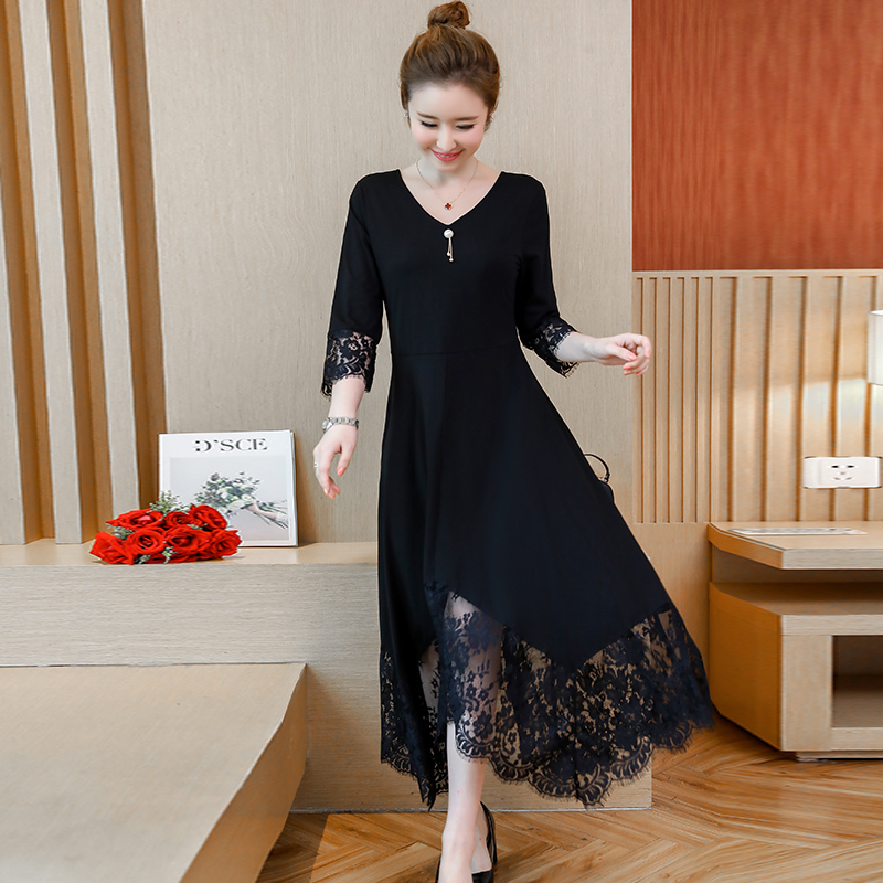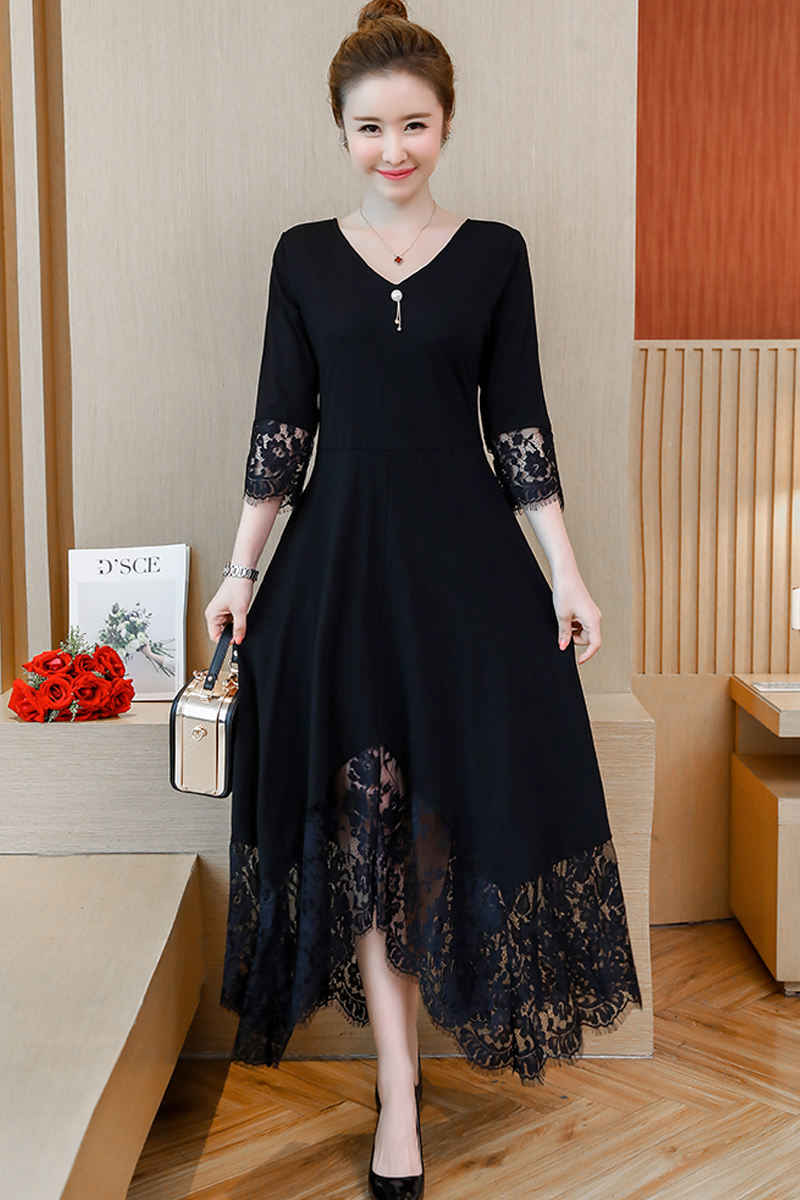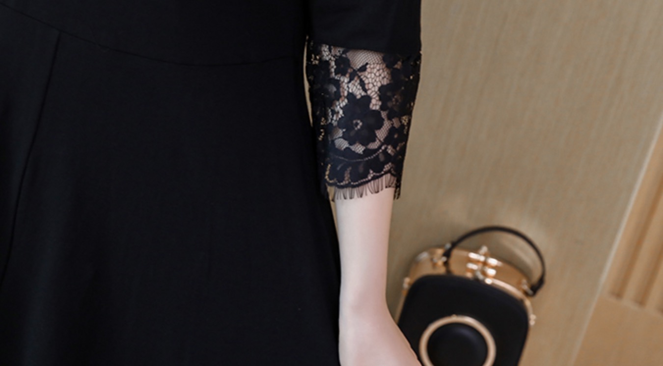 袖とスカートのレースがエレガントなドレスワンピースです